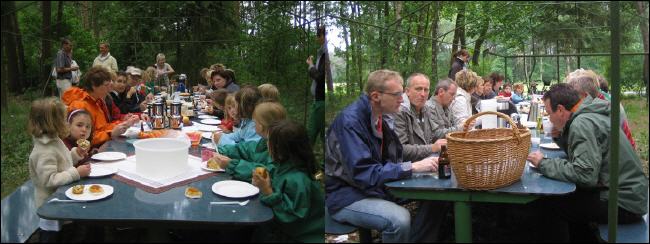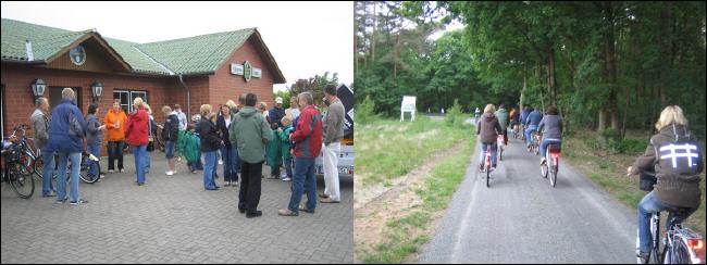 Zum Glück blieb es trocken und so radelten wir von Bahrenborstel Richtung Scharringhausen. An einem "schattigen" Plätzchen warteten Andreas und Guido mit dem Getränkeanhänger auf die durstige Truppe. |