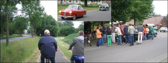 Durch Scharringhausen ging es am Sportplatz vorbei, wo gerade der Schlußpfiff ertönte und die Fussballer nach einer Niederlage leider absteigen müssen. Beim Scharringhauser Schützenhaus machten wir unsere dritte Pause, wo wir auch einige Oldtimerfreunde mit ihren "alten Kisten" trafen, die gerade ihre Ausfahrt beendeten. |