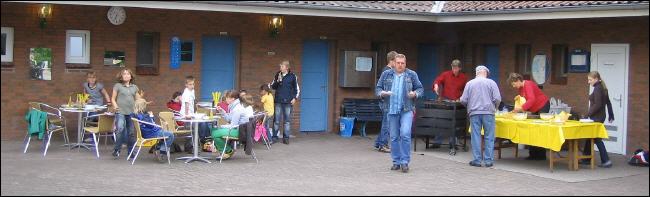 Gegen 18:00 Uhr trudelten die gut gelaunten Radler bei der Badeanstalt ein. Famile Wolter hatte ein leckeres Grillbüffet vorbereitet. |