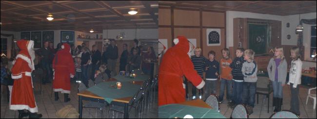 Am ersten Advent findet immer das letzte Monatschiessen des Jahres statt. Für die Schützen, die letzte Gelegenheit fehlende Bedingungen zu erringen und auf den Jahrespokal zu schießen. Auch die Kinder geben ihre letzten Wertungsschüsse auf den Jahrespokal "Jugend" ab, der noch am selben Abend verliehen wird. Doch zuvor wird noch der Nikolaus erwartet, der gegen 18:00 Uhr mitsamt Knecht Ruprecht erscheint. Artig sagen die Kinder ihre Gedichte auf. Und wenn der Nikolaus mal schimpft fliegt auch gleich die Sicherung raus und die ganze Gesellschaft steht im Dunkeln. |