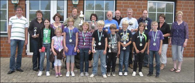 Nach der Siegerehrung fanden sich die erfolgreichen Teilnehmer zum Siegerfoto am Schützenhaus ein. (Ergebnisse) |